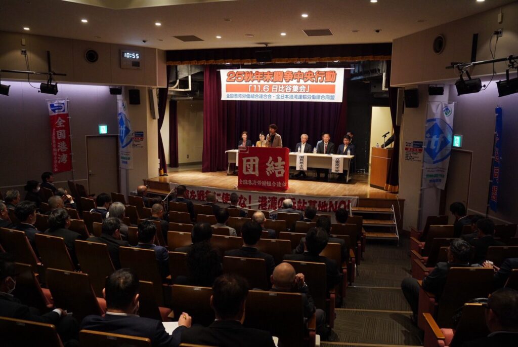 西岡秀子企業団体委員長(衆議院議員/長崎1区)は6日、東京都内で開かれた「全国港湾労働組合連合会・全日本港湾運輸労働組合同盟 25秋年末闘争中央行動 日比谷集会」に出席し、党を代表して挨拶を行った。